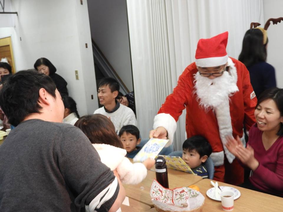 途中でサンタクロースも登場!子どもたちはプレゼントをもらい、にぎやかに和やかにクリスマスを祝いました。