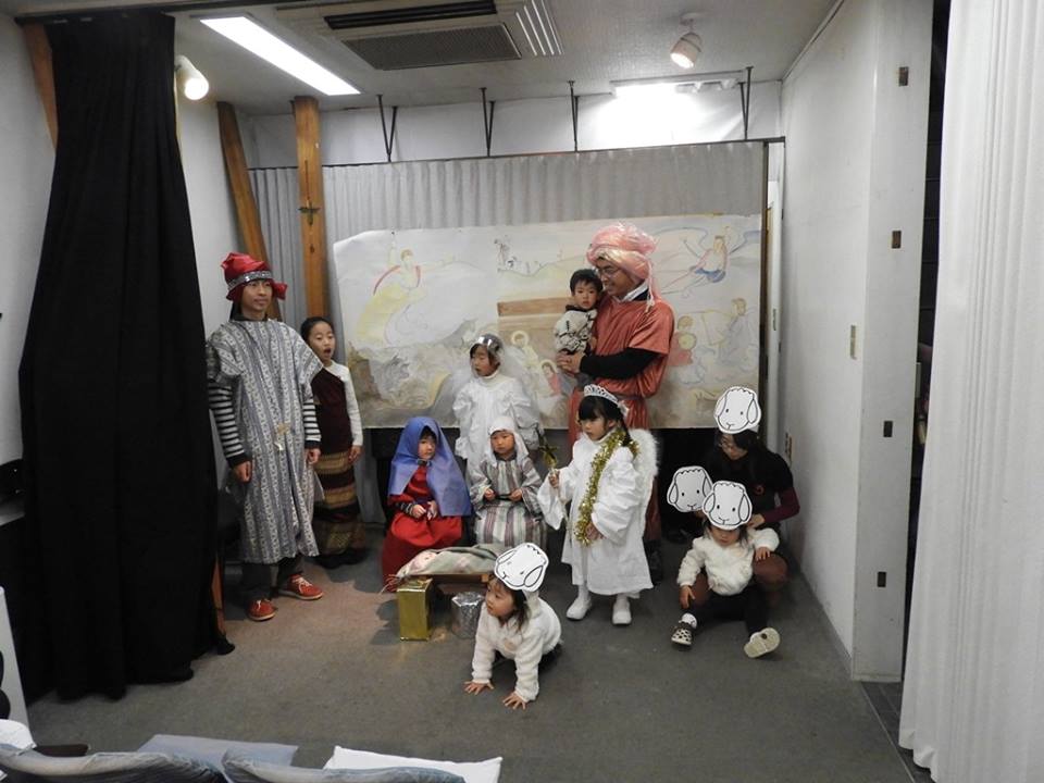 ページェント(降誕劇)には可愛い子ども達とそのお父さんお母さんが出演して下さって、イエス・キリストの降誕の喜びを心温まる演技で表現して下さいました。観客一同幸せな気持ちになりました。